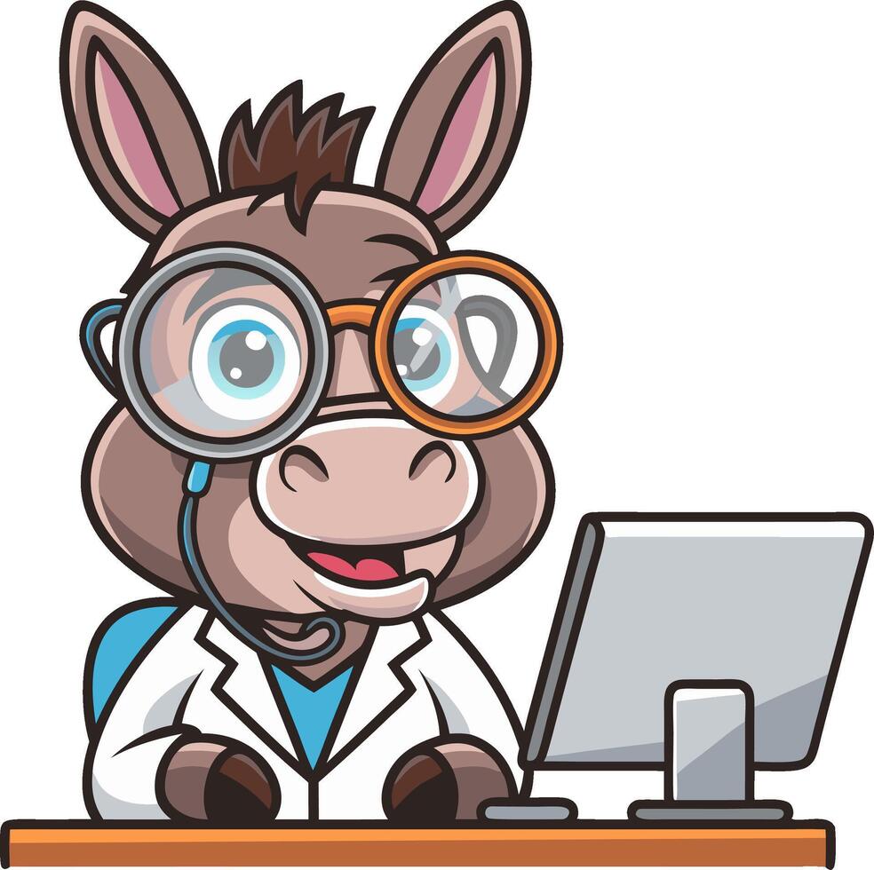 Adorable Donkey Scientist Cartoon Working on Computer Design Pro Vector