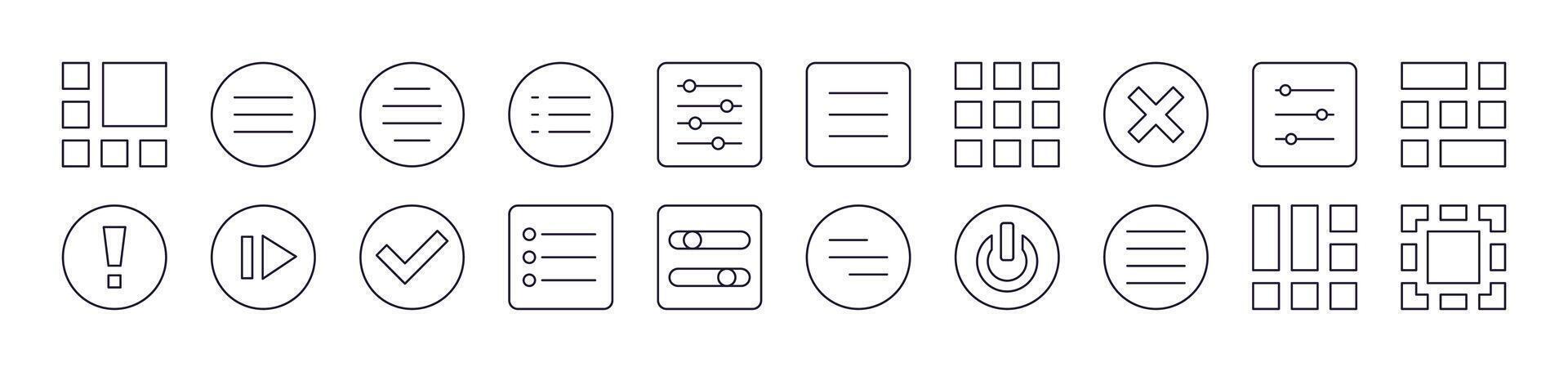 Set of Line Icons of Interface. Editable Stroke. Minimalistic Linear Pictogram for Design of Cards, Apps, Banners, Posts Pro Vector