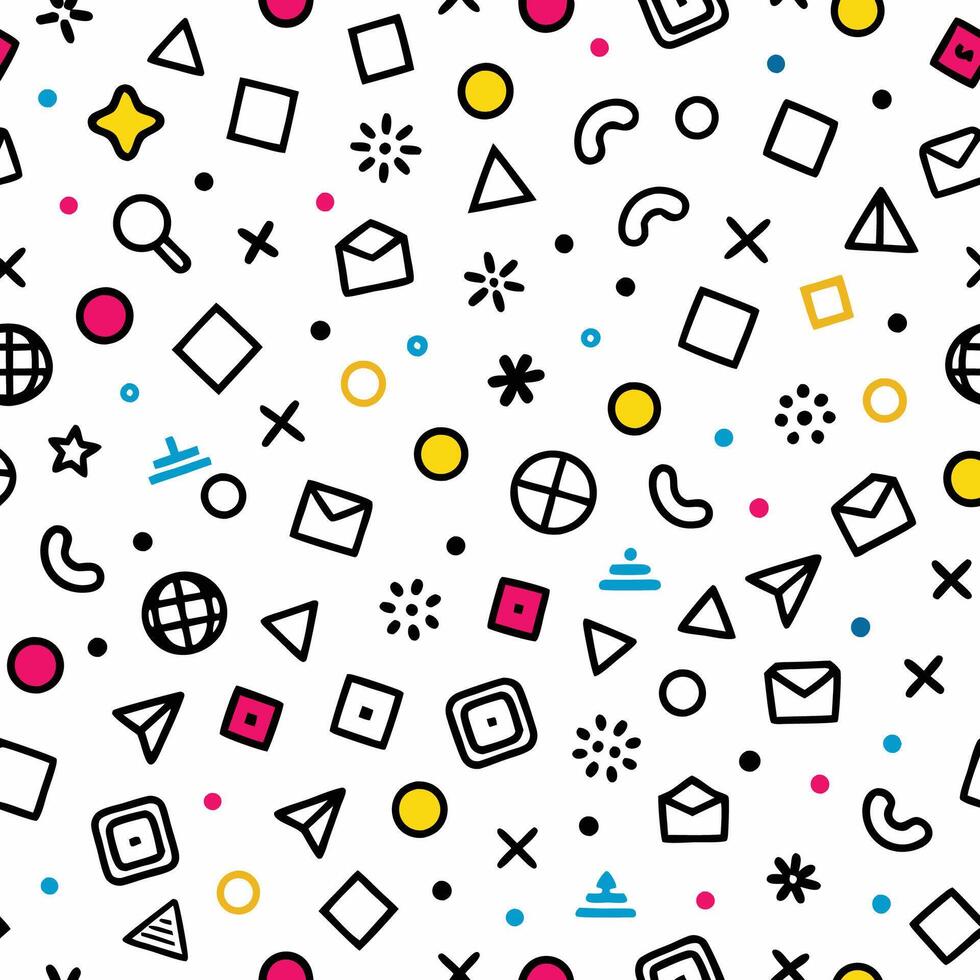 seamless pattern with geometric shapes and icons vector