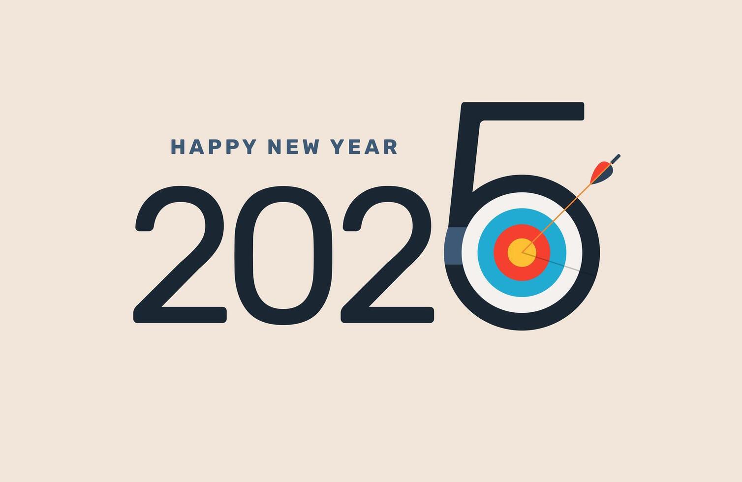 2025 Happy New Year. Numbers with target and arrow. Concept of making a plan and achieving goal in new year. Pro Vector
