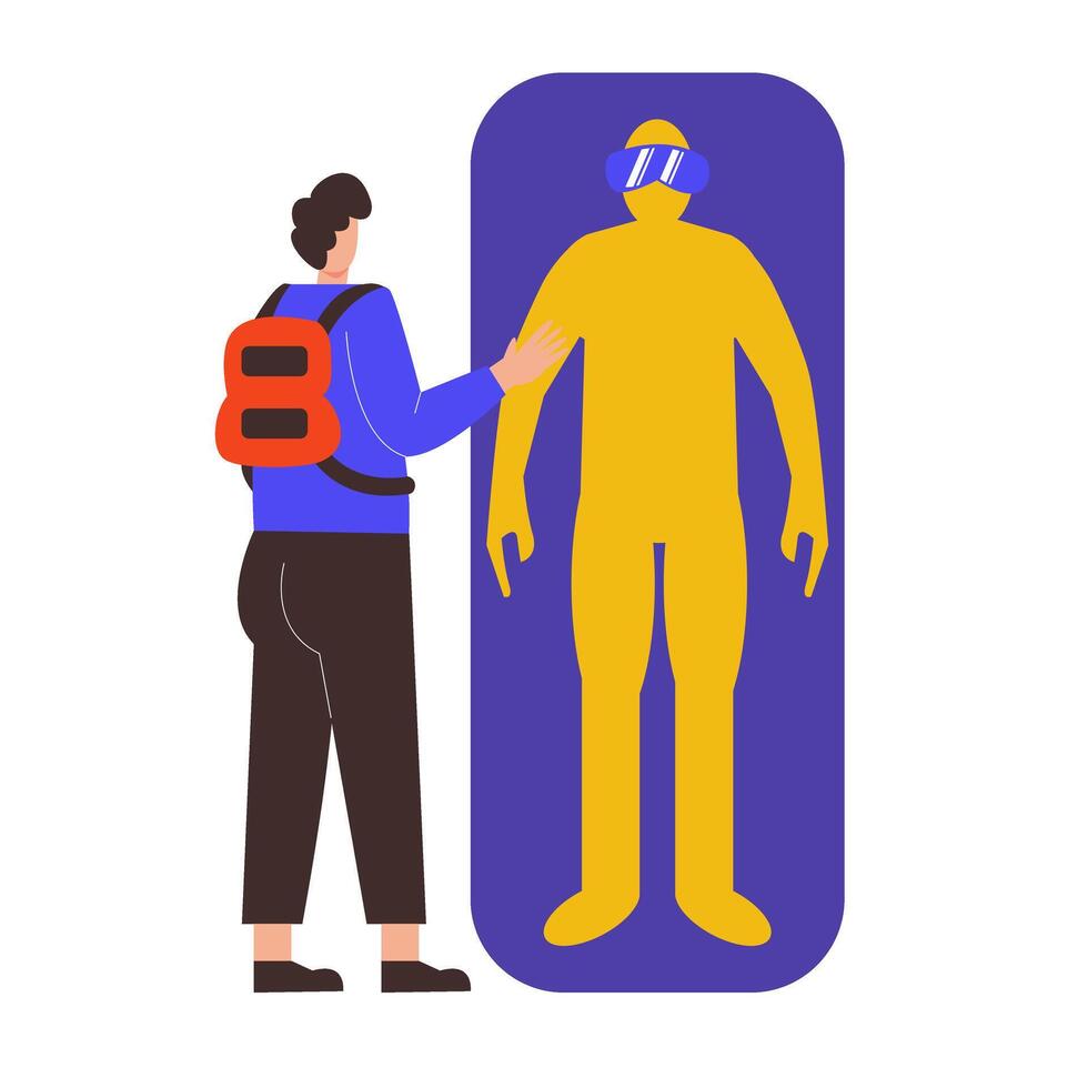 Illustration of a man using virtual reality while floating with suitcase Pro Vector