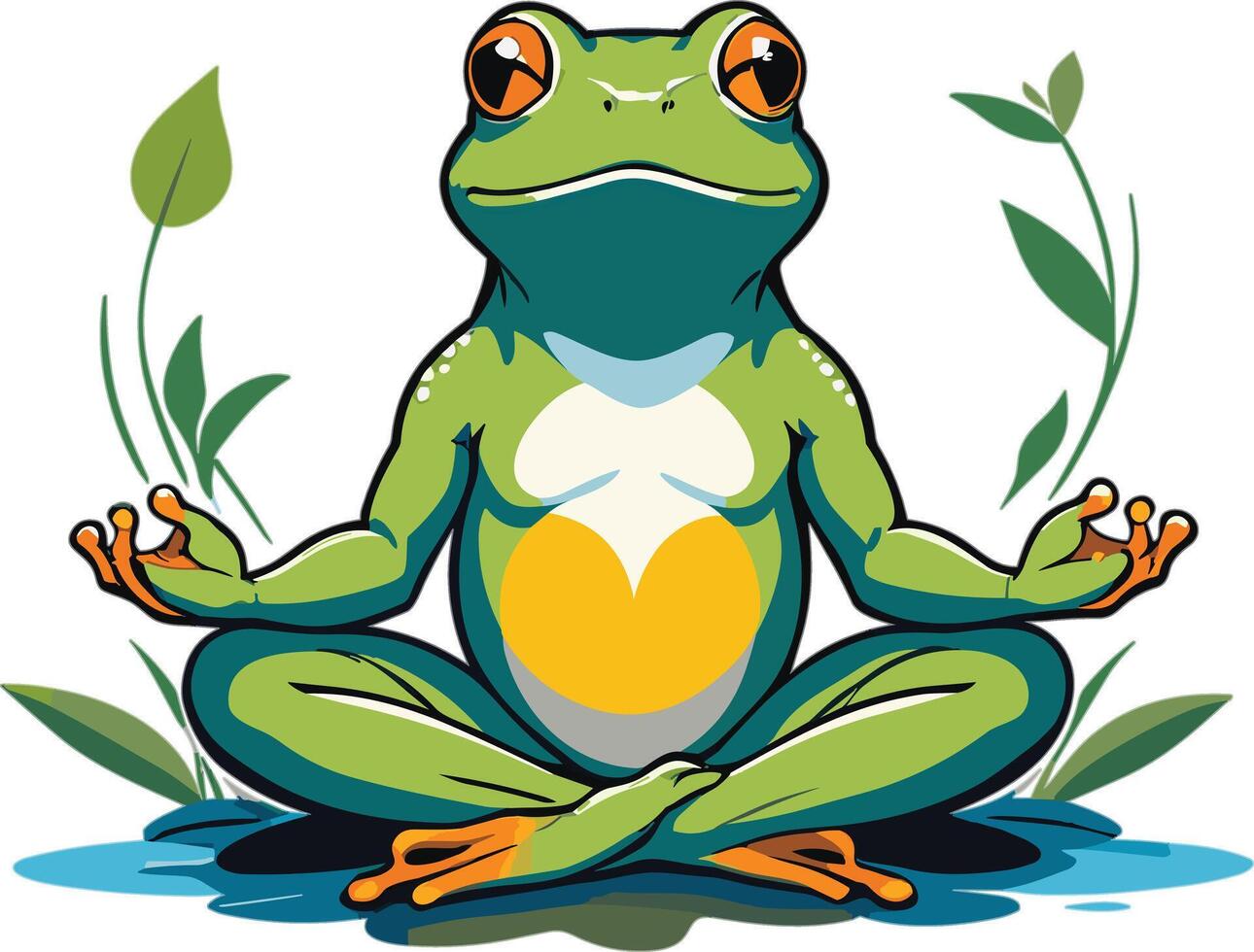 Calm frog practices meditation in a tranquil natural setting vector