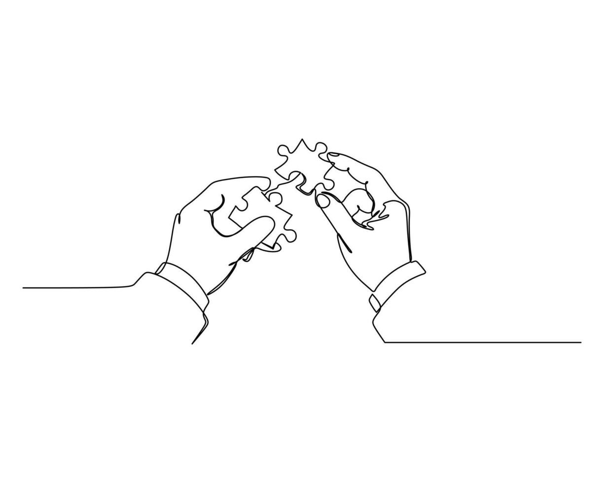 Fitting puzzle pieces together, symbolizing problem solving, collaboration, and finding solutions by connecting different parts. Minimalistic and conceptual art in business and finance illustration Pro Vector