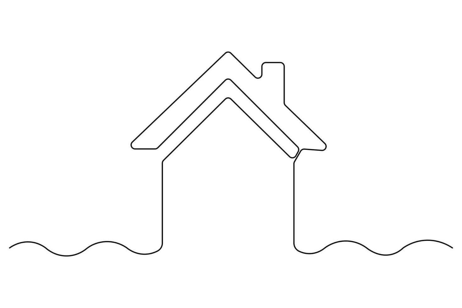 Sleek and simple house outline drawing in continuous line style Pro Vector
