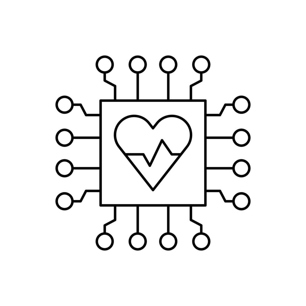 AI in healthcare line icon design. Implementation AI in health sector. Chip with heart and pulse line design Pro Vector