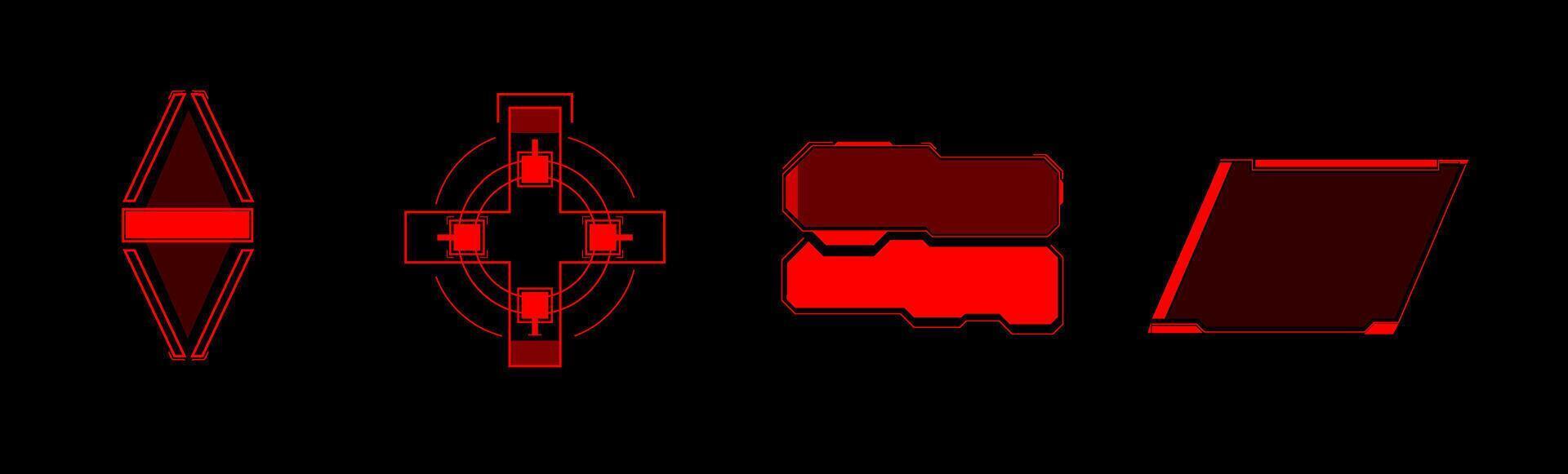 Red geometric shapes and patterns displayed on a dark background in an abstract design Pro Vector