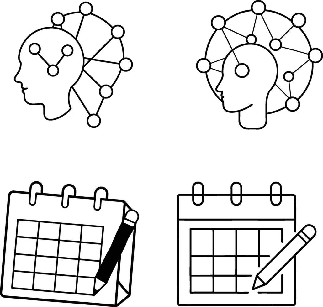 Mind Mapping, Network Thinking, Planning, Scheduling, Calendar Icons Pro Vector