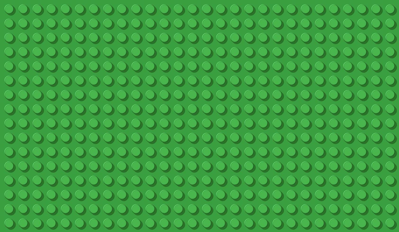 Green Construction Toy Baseplate Background, Top View, Featuring a Grid of Circular Studs for Building Block Designs. Wide Banner with Copy Space for Text, Design Template Pro Vector