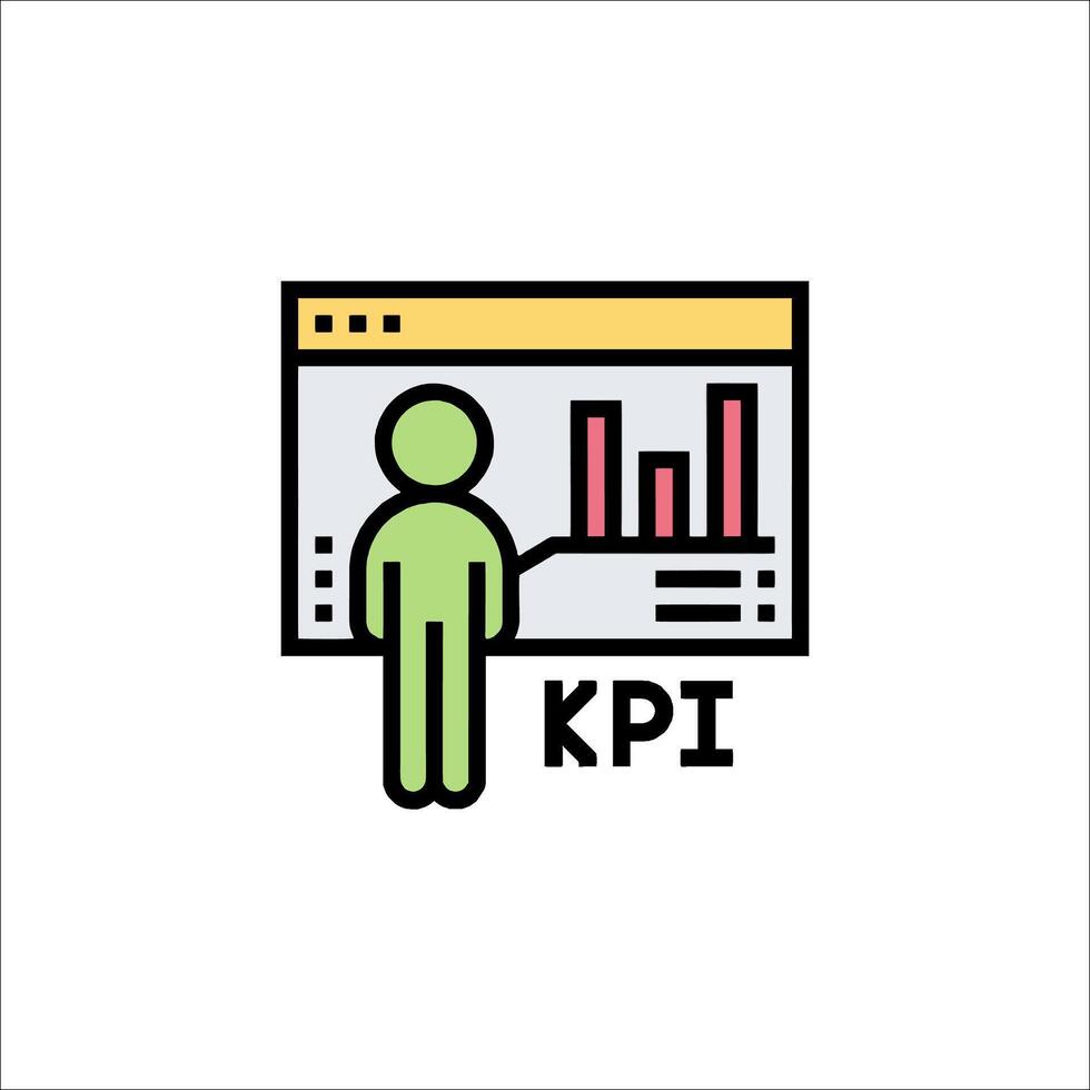 Kpi icon with a man standing in front of a computer screen vector
