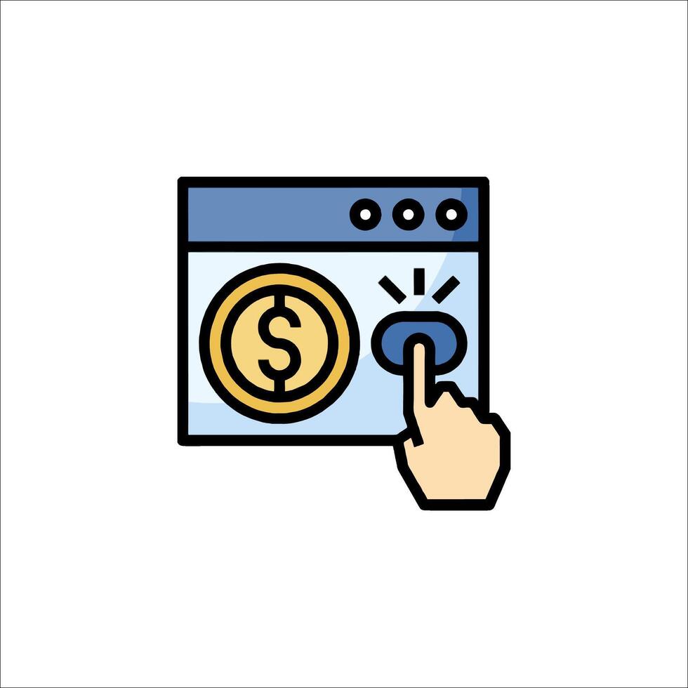 A hand pressing a button on a computer screen with a dollar coin Free Vector