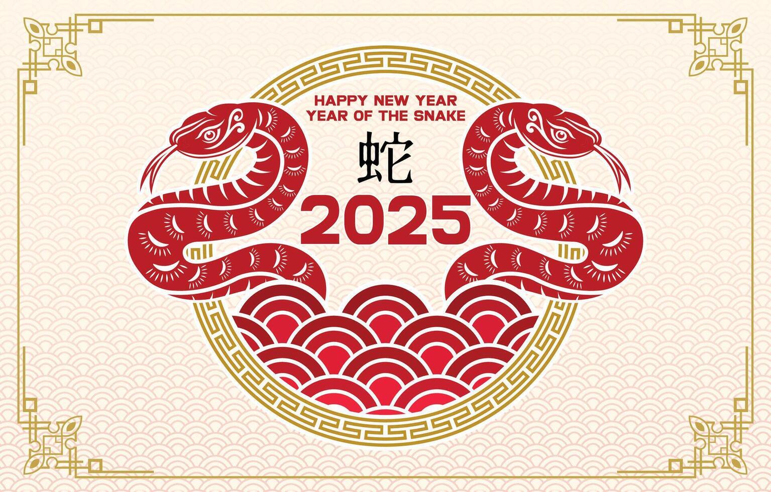 2025 Year of the Snake Chinese New Year Festive Design with Red and Gold Patterns Pro Vector