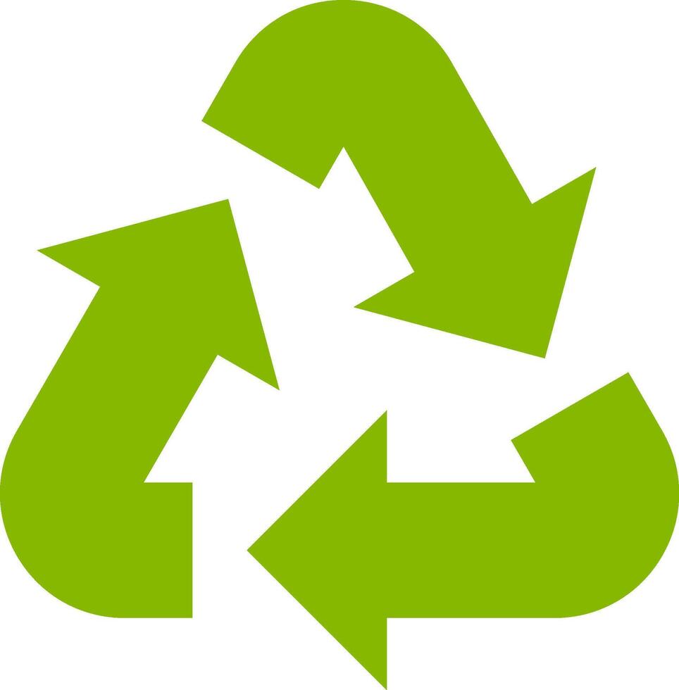 Universal recycling symbol featuring three green arrows in a continuous loop, representing the transformation of waste into reusable resources and promoting sustainability Pro Vector