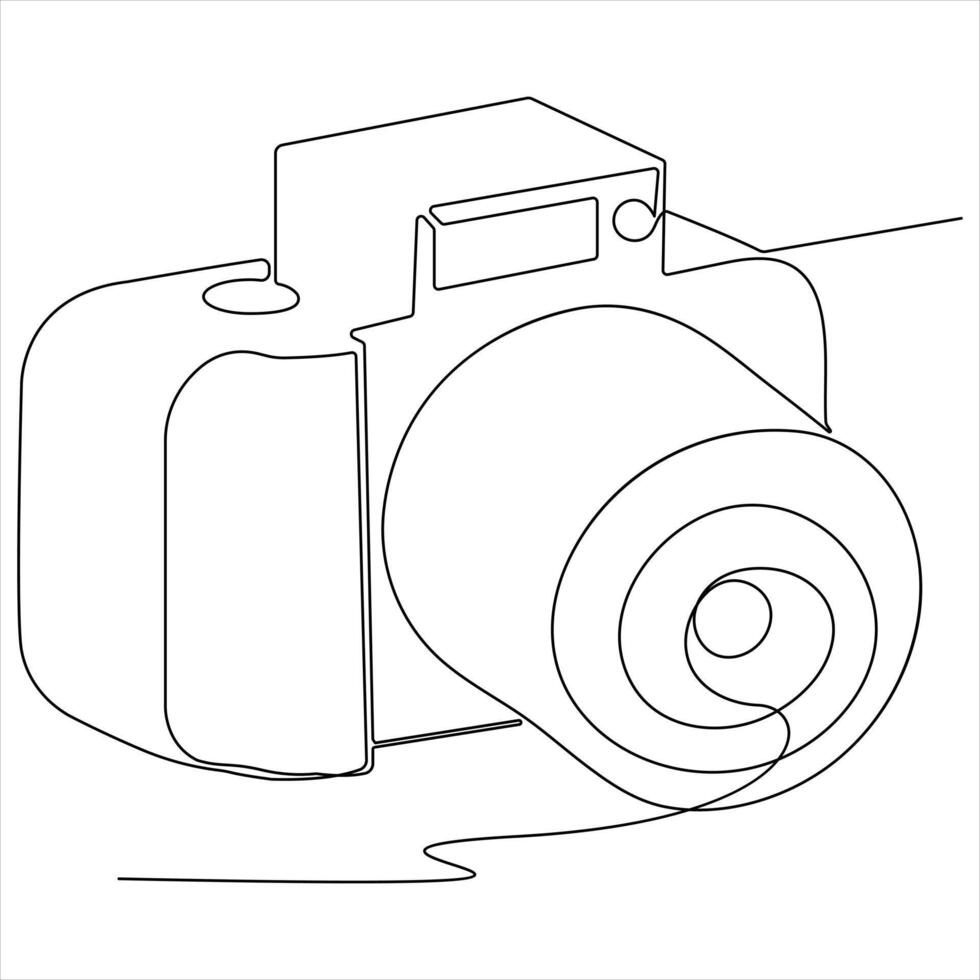 Continuous camera single line art drawing sketch illustration Pro Vector