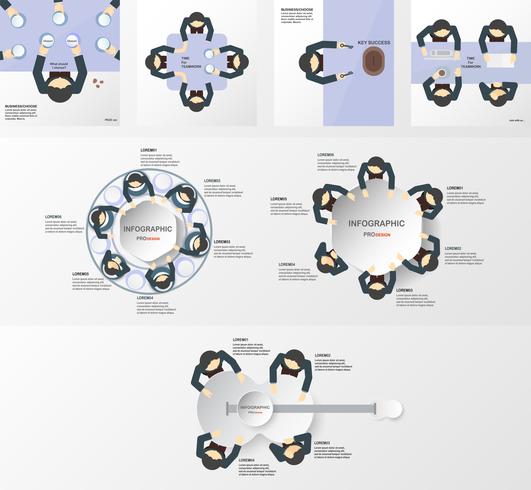 Set of infographics elements with business men team. Template for business presentation and motion graphic with copy space for text in flat and paper cut style. vector