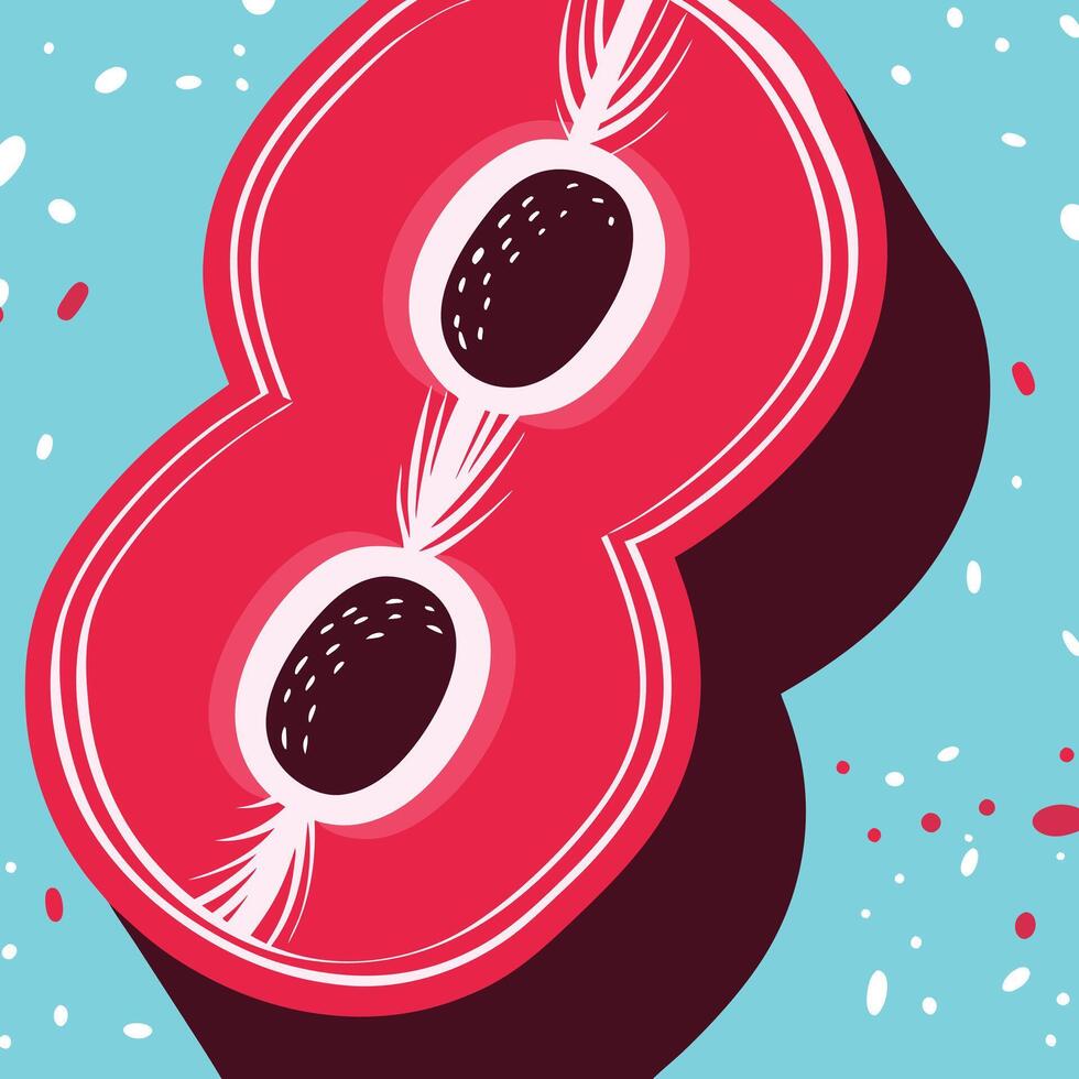 Abstract Number Eight Design, Red and White Shapes, Isometric View, Bold Graphic vector