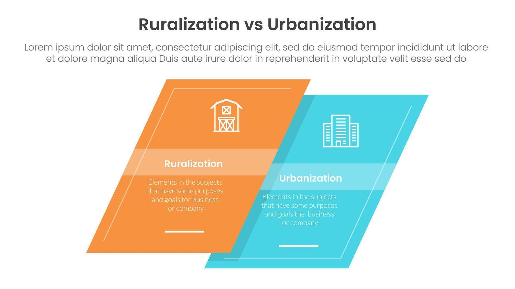 urbanization vs ruralization comparison concept for infographic template banner with table, box, content, column, big, circle, shape with two point list information vector