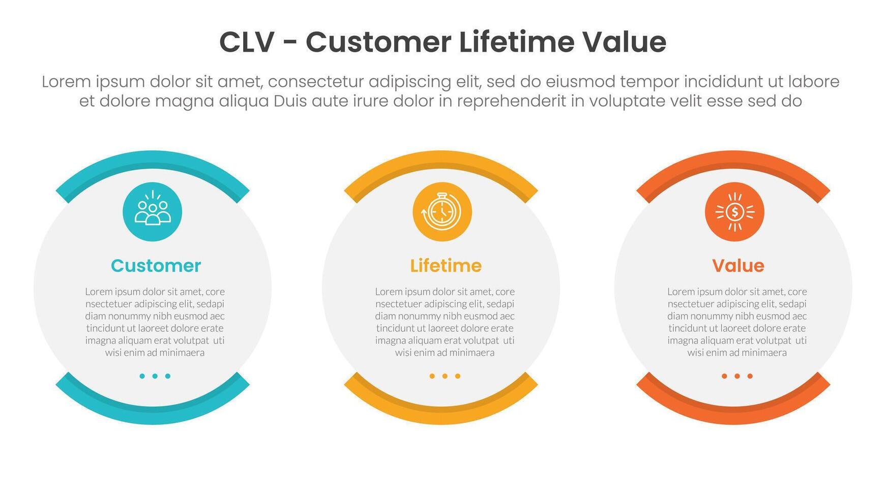 CLV customer lifetime value infographic 3 point with shape egg round box for slide presentation vector