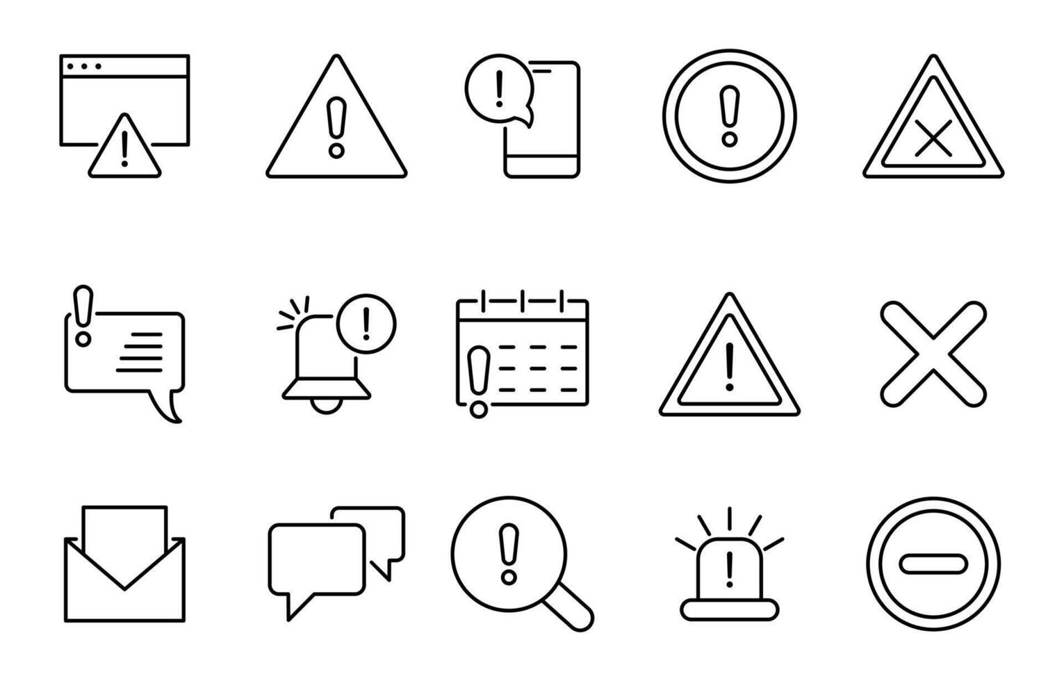 Set of warning related line icons. Alert, risk, Caution, warning, exclamation mark danger, error, shield etc. thin line stroke icon. Pro Vector