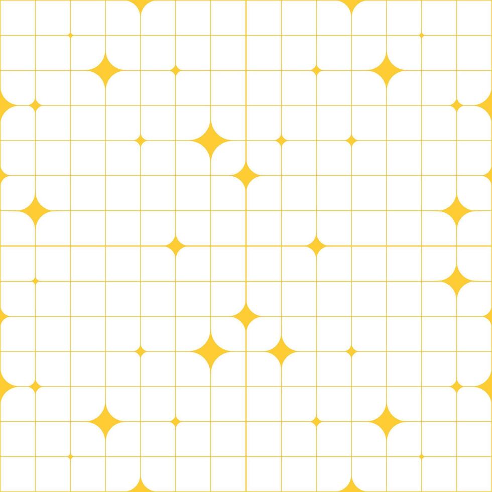 Seamless pattern with shiny stars and mesh. Abstract geometric texture in white and yellow. Pro Vector