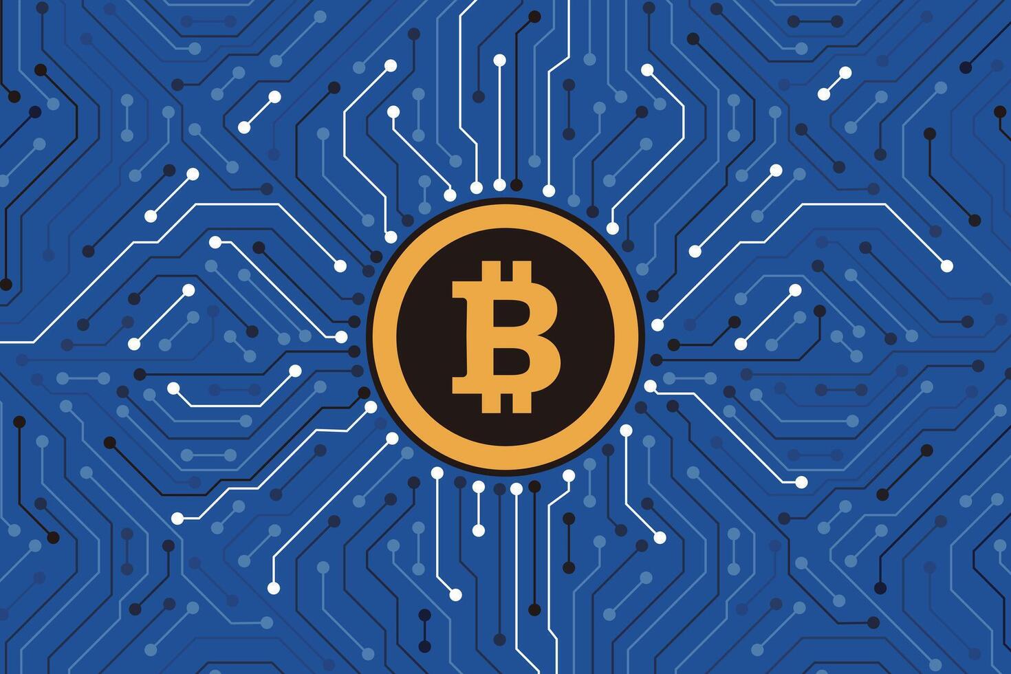Microchip processor with golden Bitcoin Pro Vector