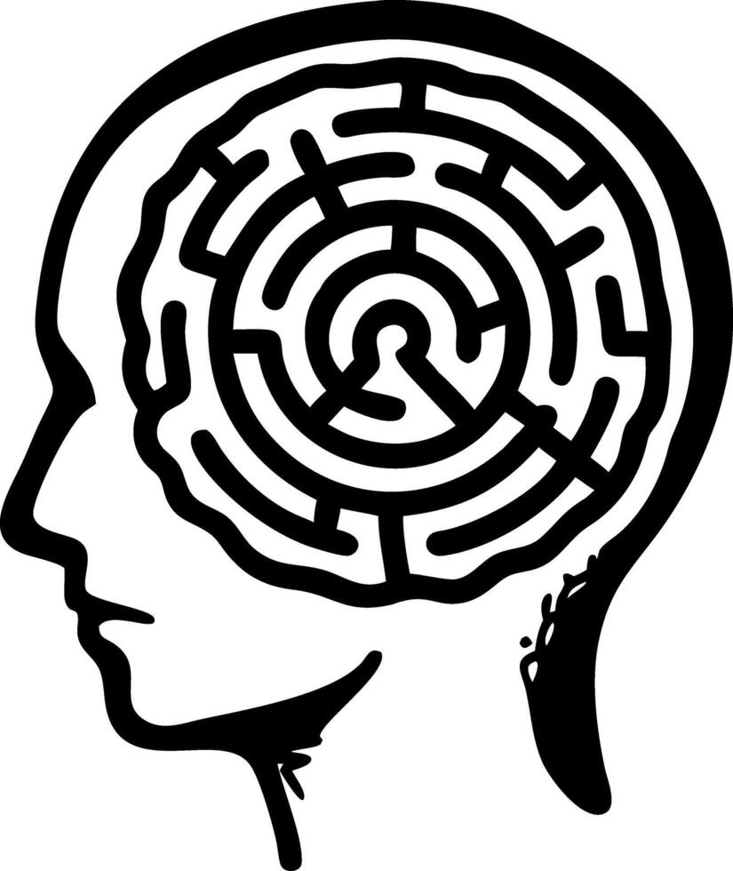Human Head with Maze Brain Illustration Symbolizing Mental Complexity and Problem Solving vector