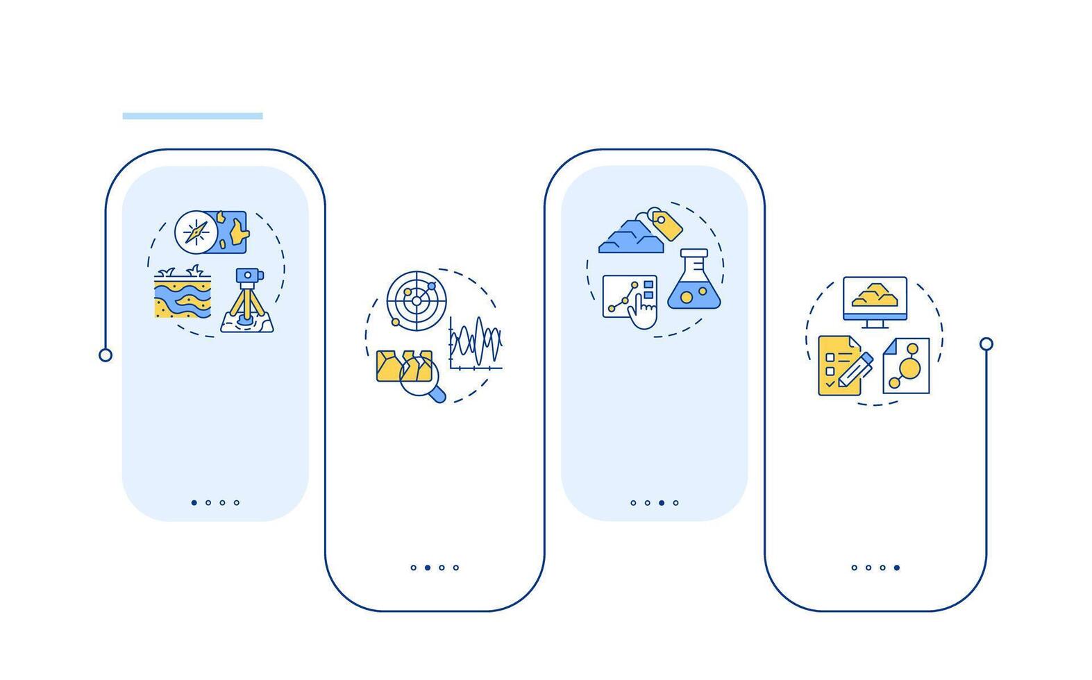 Geotechnical investigation rectangle infographic . Geodetic survey with modern equipment. Data visualization with 4 steps. Editable rectangular options chart Pro Vector
