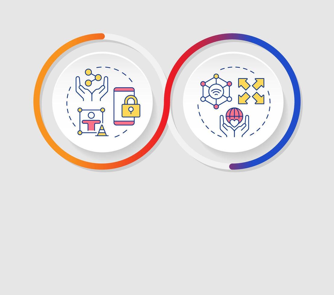 Digital experiences infographics circles sequence. Audience analysis online. E marketing strategy. Data visualization with 2 steps. Editable rectangular options chart Pro Vector