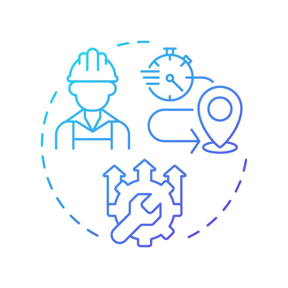 Improve technician utilization blue gradient concept icon. Benefit of FSM. Field service management. Round shape line illustration. Abstract idea. Graphic design. Easy to use in article Pro Vector