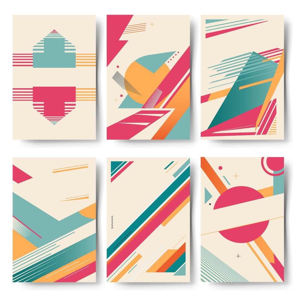 Set of modern abstract backgrounds with place for text. Light background and bright figures. Trendy geometrical shapes Pro Vector