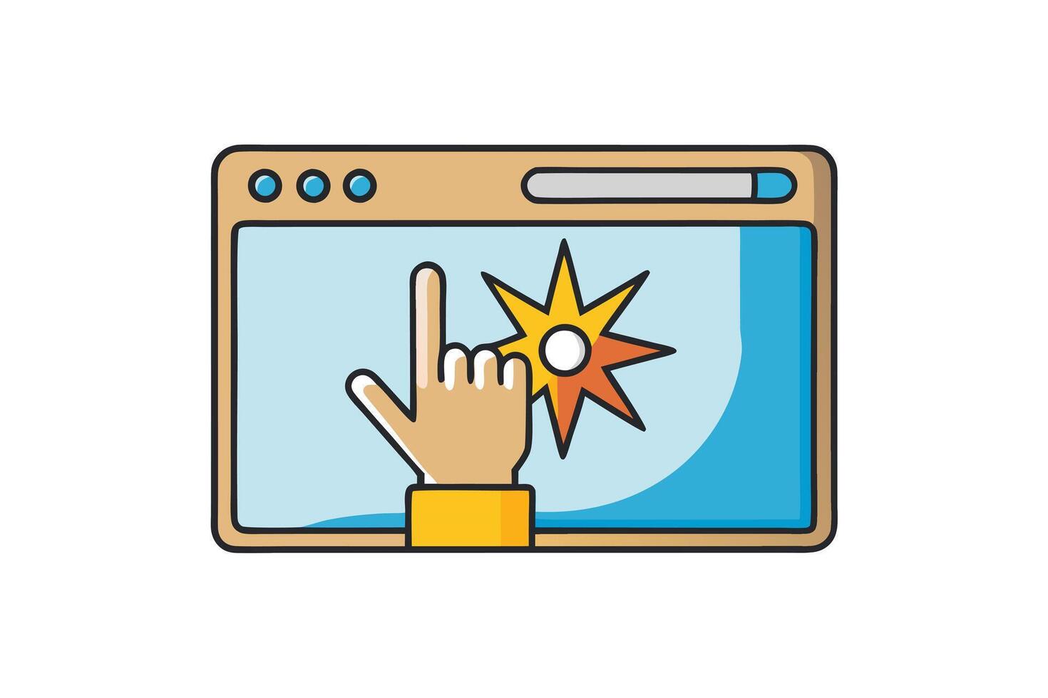 Creative cartoon illustration of a hand clicking on a web interface, symbolizing user interaction, web navigation, and digital access vector