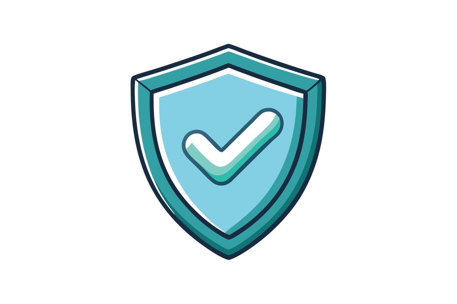 Fun cartoon style shield icon with a bold checkmark symbolizing authentication, safety, and reliability vector