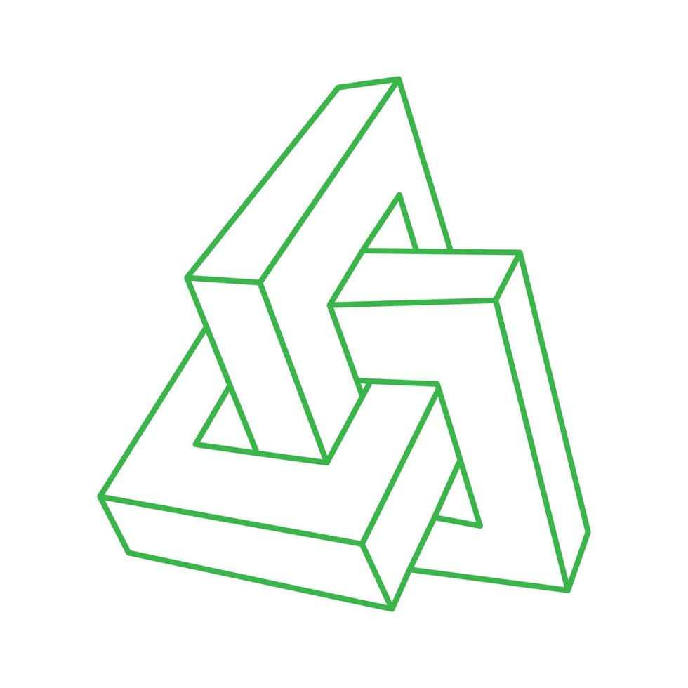 Impossible shapes. Logo. Optical illusion. Sacred geometry figure. Abstract eternal green geometric object. Impossible endless outline. Optical art. Impossible geometry shape on a white background. Pro Vector
