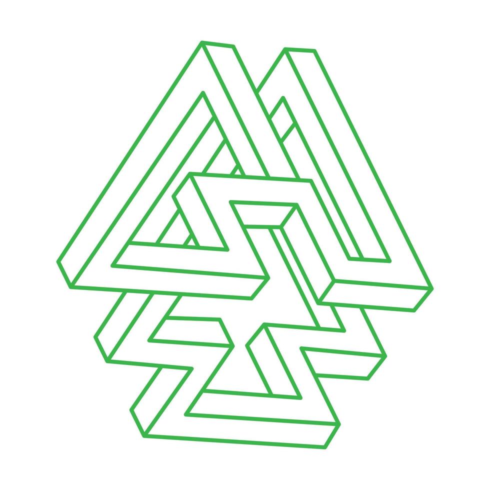 Impossible shape. Logo. Sacred geometry figure. Optical illusion. Abstract eternal geometric object. Impossible endless outline. Line art. Optical art. Impossible geometry shape on a white background. Pro Vector
