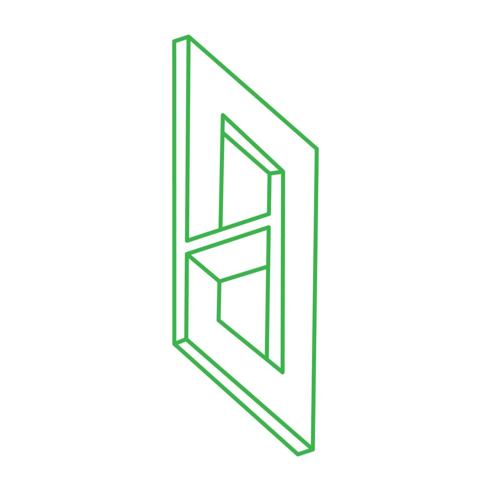 Impossible shape. Logo. Sacred geometry figure. Optical illusion. Abstract eternal geometric object. Impossible endless outline. Optical art. Impossible geometry green shape on a white background. Pro Vector