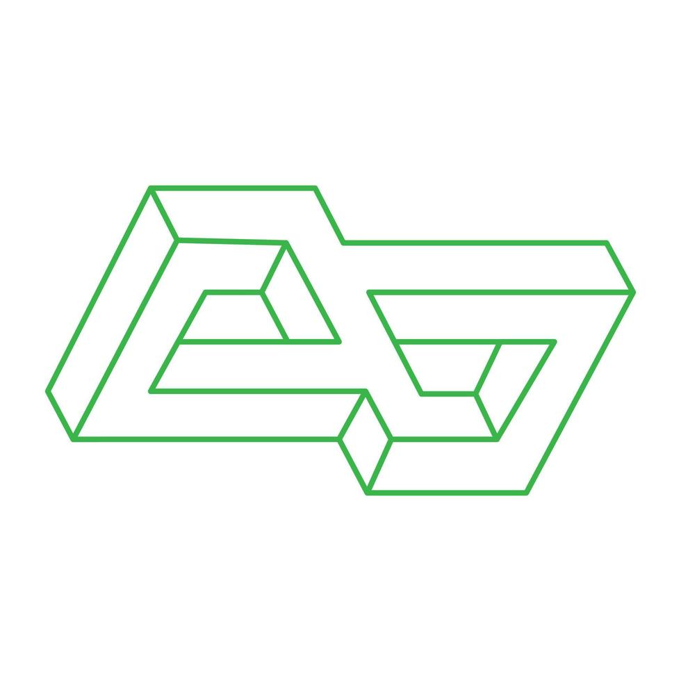 Impossible green shape. Sacred geometry figures. Optical illusion. Abstract eternal geometric object. Impossible endless outline. Logo. Optical art. Impossible geometry shape on a white background. Pro Vector