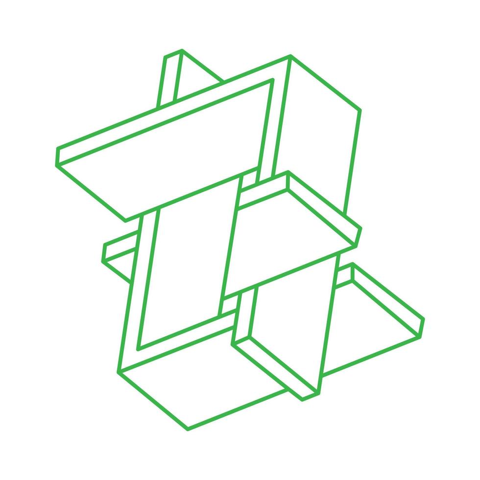 Impossible shape. Logo. Sacred geometry figure. Optical illusion. Abstract eternal geometric object. Impossible endless outline. Line art. Optical art. Impossible geometry shape on a white background. Pro Vector
