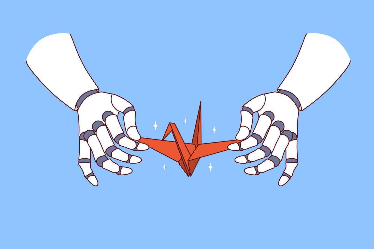 Paper swan in hands robot demonstrating creative skills thanks to artificial intelligence training Pro Vector
