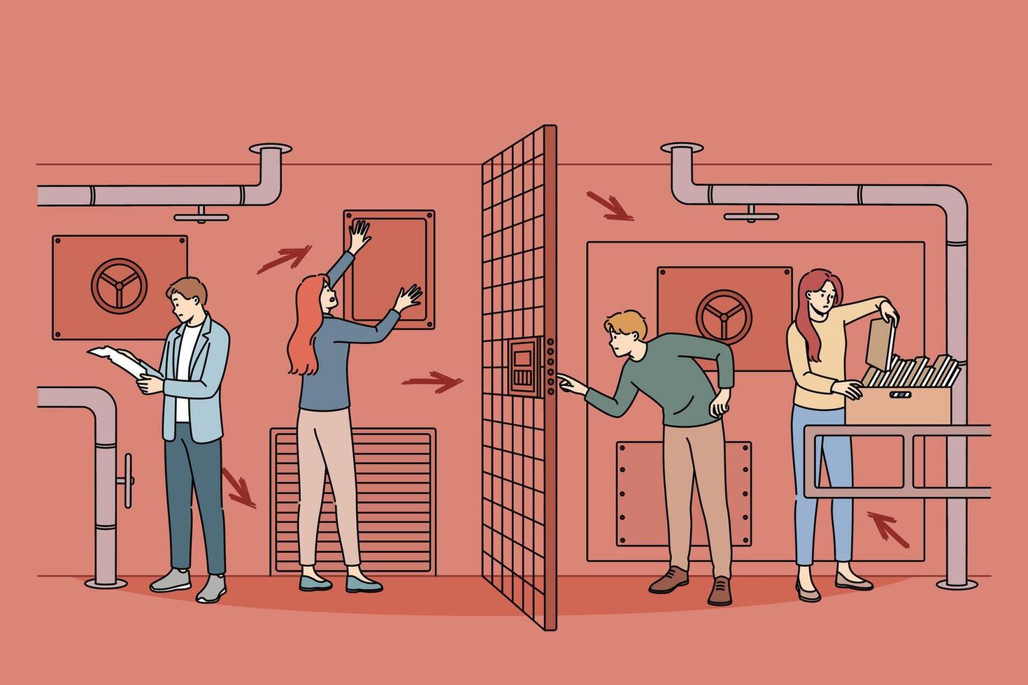 Visitors to quest room are looking for key to open door or clue that will allow them to move on Pro Vector