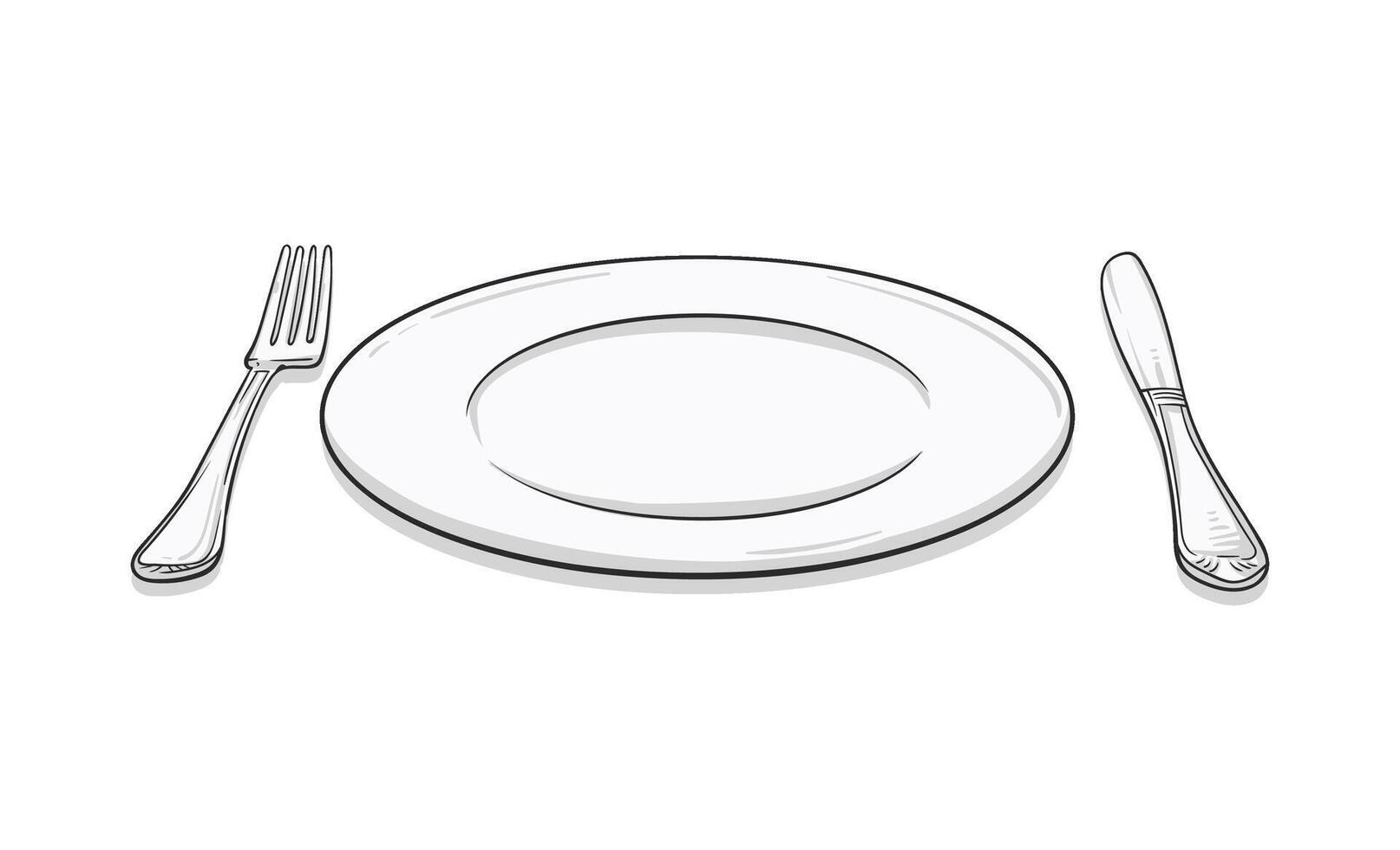 Table Setting Sketch, Fork, Knife and Plate Pro Vector