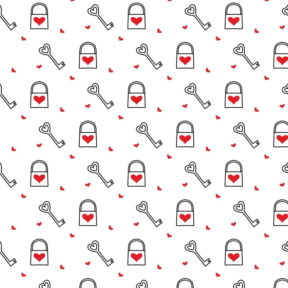 Vector pattern with lock and key. Pattern for Valentine's Day. Doodle style. Minimalistic style. Pro Vector