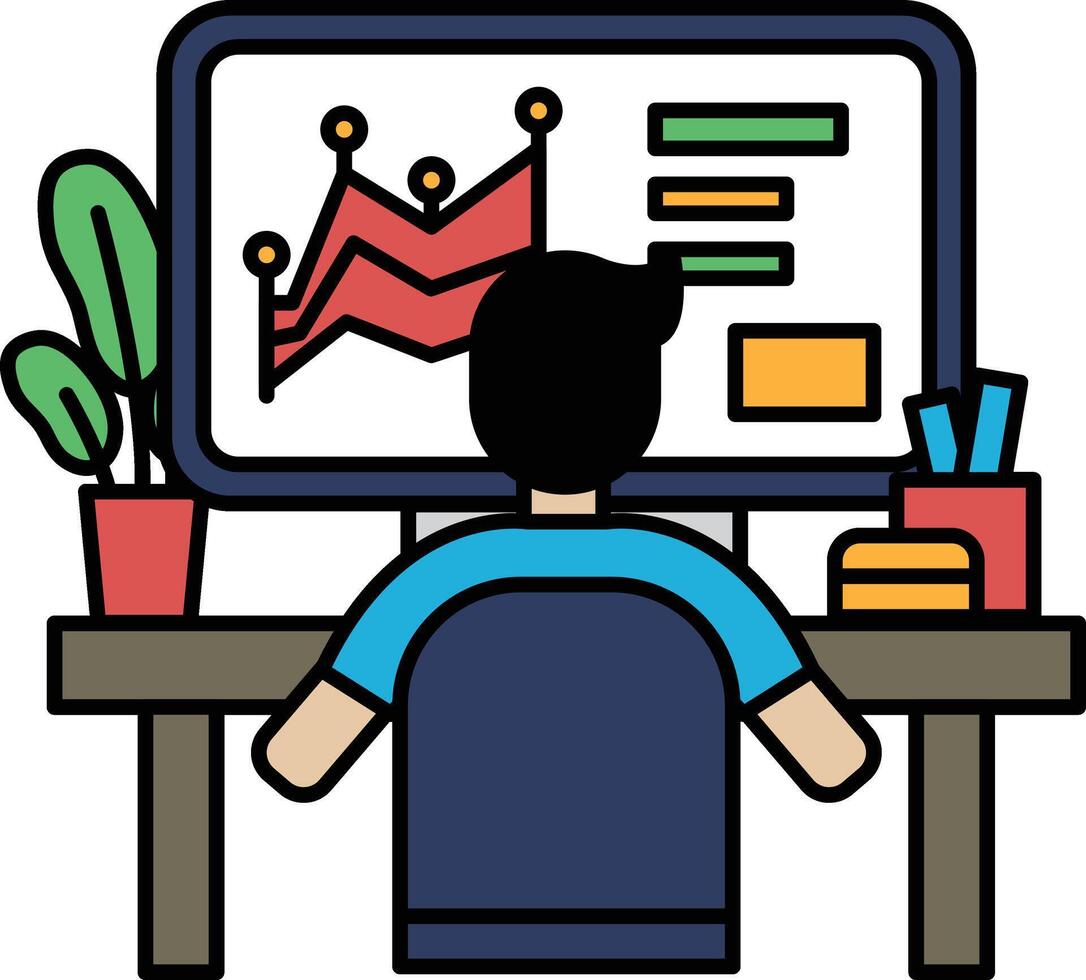 A man is sitting at a desk in front of a computer monitor Free Vector