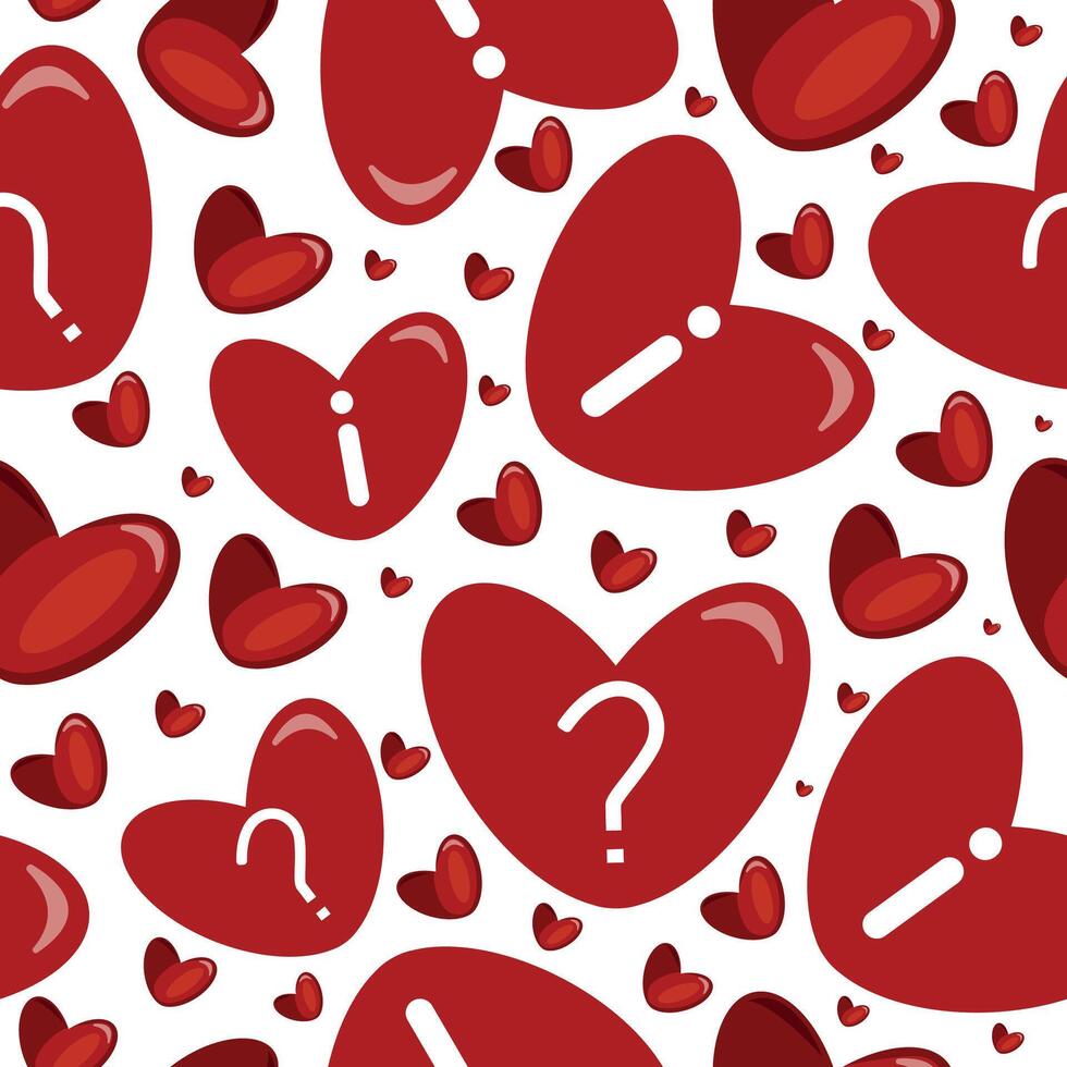 seamless pattern with pink information icon and question mark on red heart placed randomly, valentine's day pattern Pro Vector
