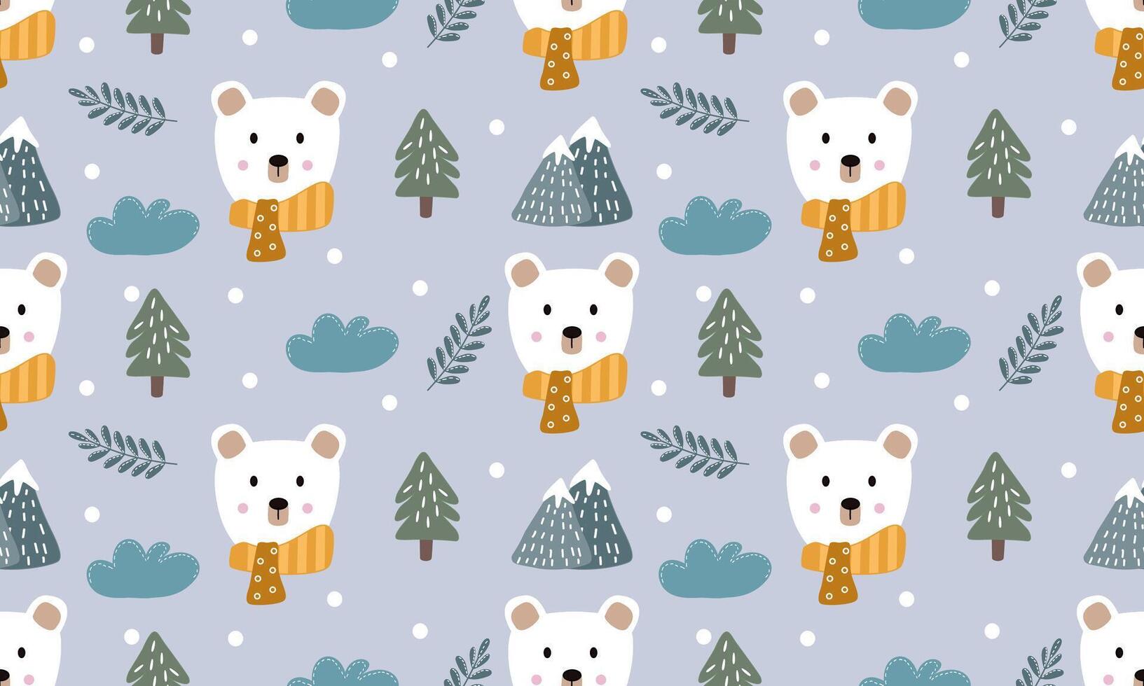 pattern hand drawn designs with white bear,snow,tree,leave on light gray background , design for fabric or various pattern printing works. Pro Vector