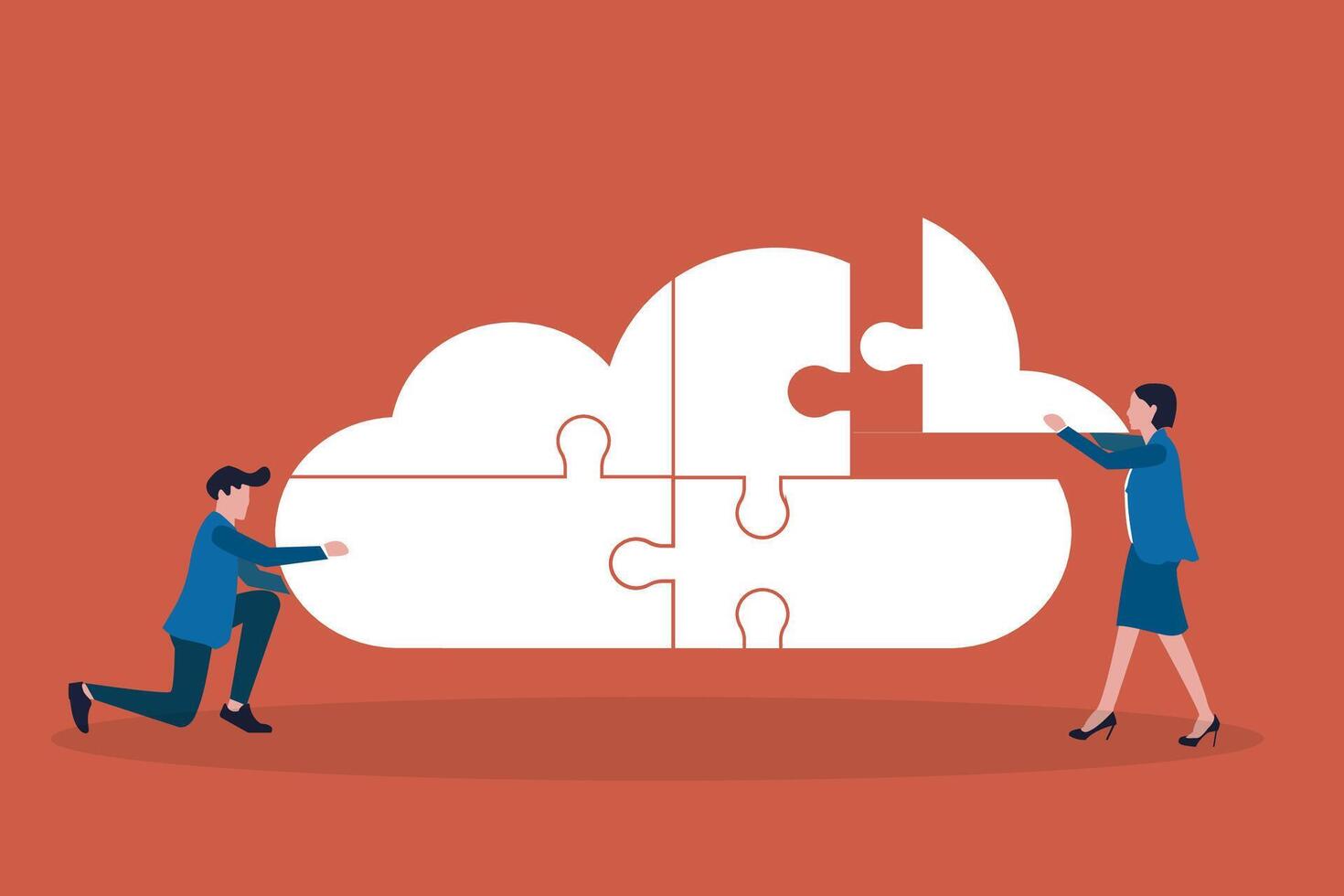 Cloud computing jigsaw puzzle with business team collaborative working. concept team work, opportunity and success Pro Vector
