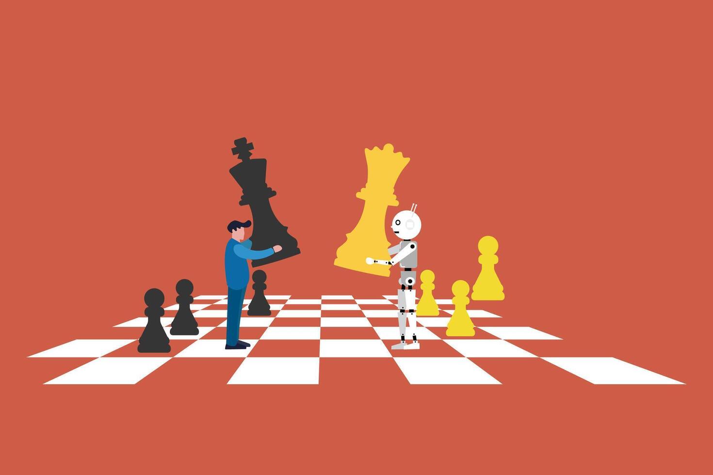 Robot vs Human playing Chess game. artificial intelligence technology concept Pro Vector