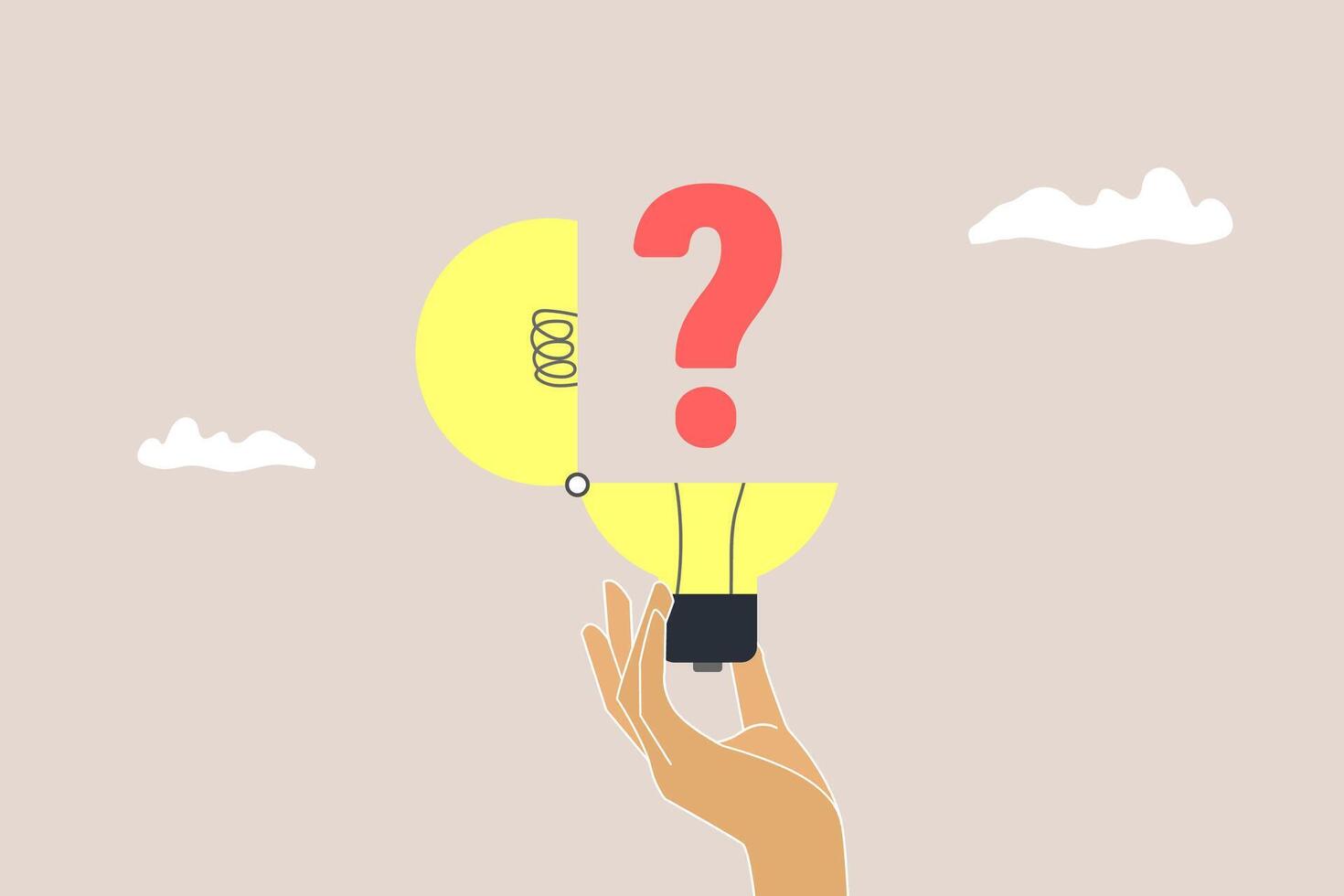 Question mark in lightbulb. concept of solve business problems, solve business problems, opportunities and goals Pro Vector