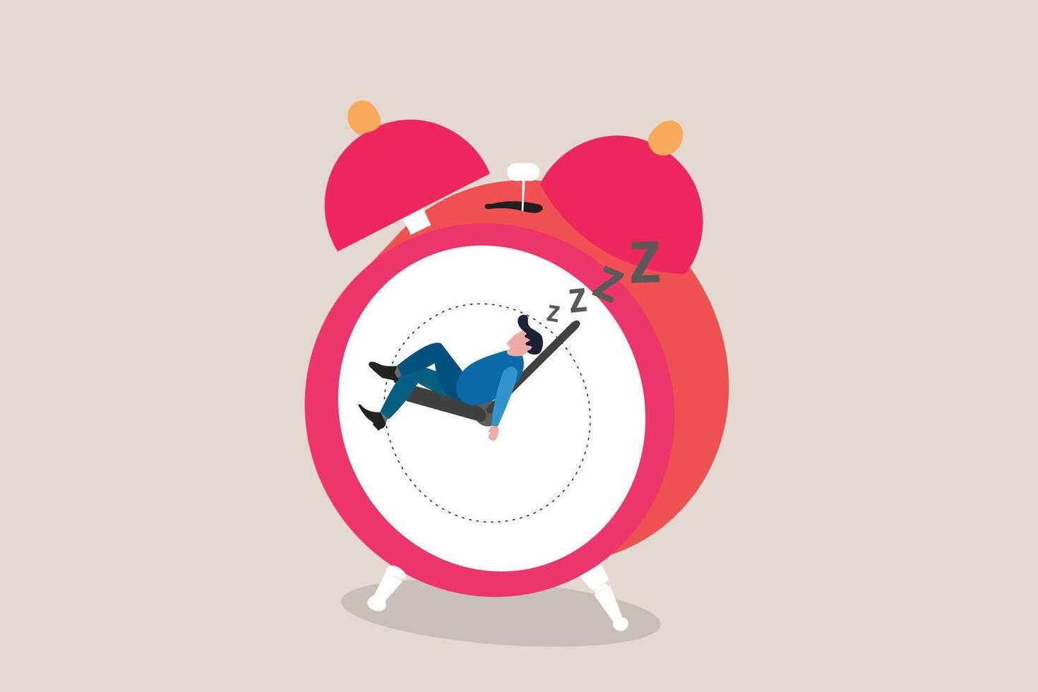 Lazy businessman sleeping on clock, unwilling to work. concept of Wasted time and slow life Pro Vector