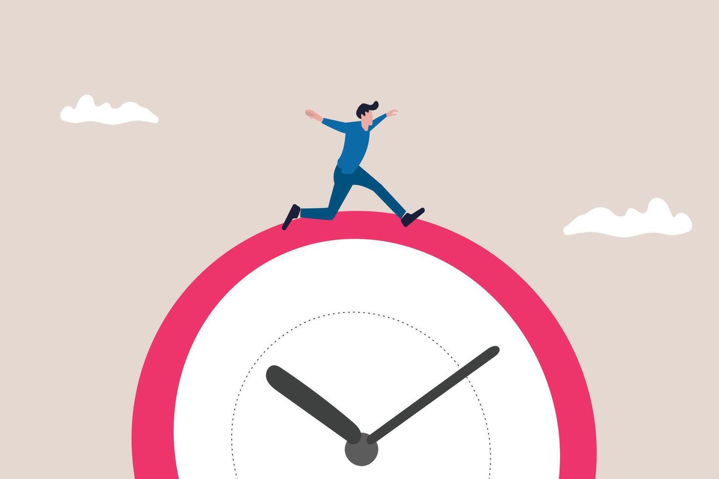 Businessman running against timer counting down. concept of Business deadline, counting down, speed and efficiency to complete work Pro Vector