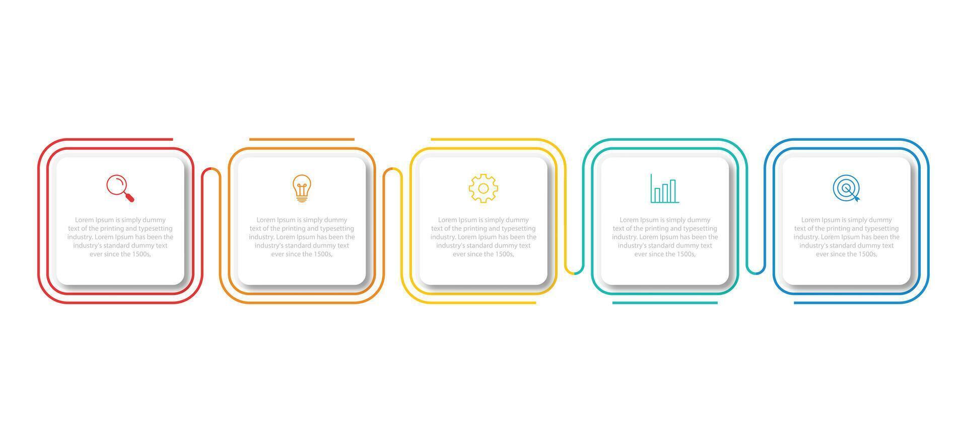 Infographic label design template with icons and 5 options or steps. Can be used for process diagram, presentations, workflow layout, banner, flow chart, info graph. Pro Vector