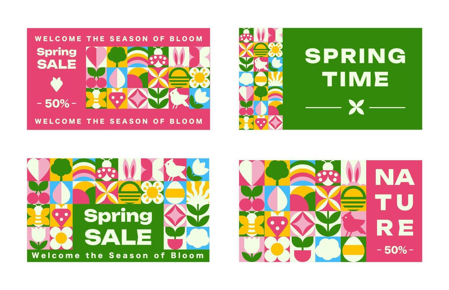 The set of cards template with Spring patterns and icons, Bauhaus Geometric style Pro Vector